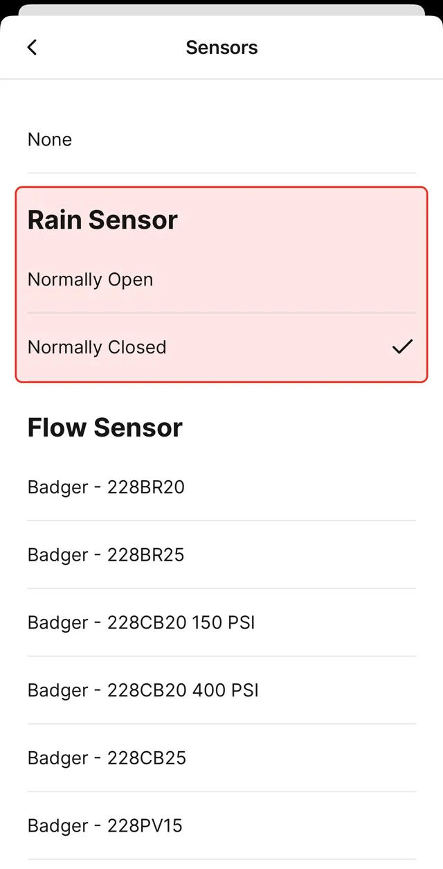3. Specify the type of your rain sensor – Normally Closed (more common) or Normally Open.